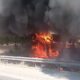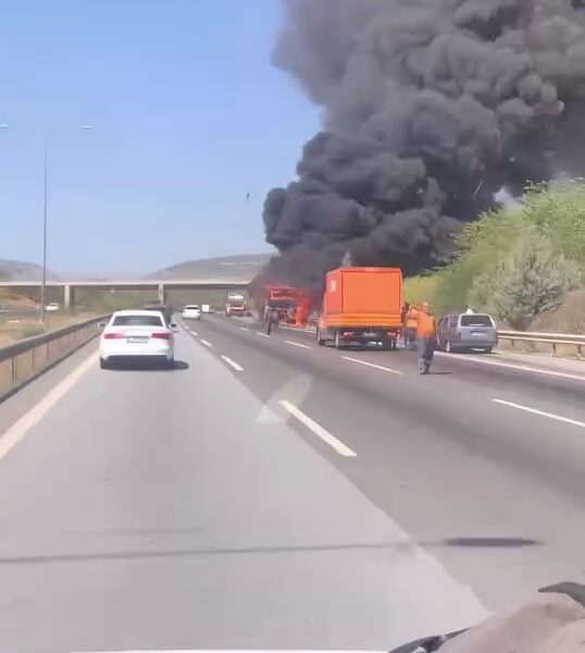 Yoldan geçen sürücüler tarafından cep telefonuyla görüntülenen otobüsteki yangının çıkış nedeninin belirlenmesi için inceleme başlatıldı.