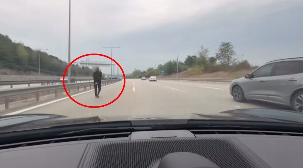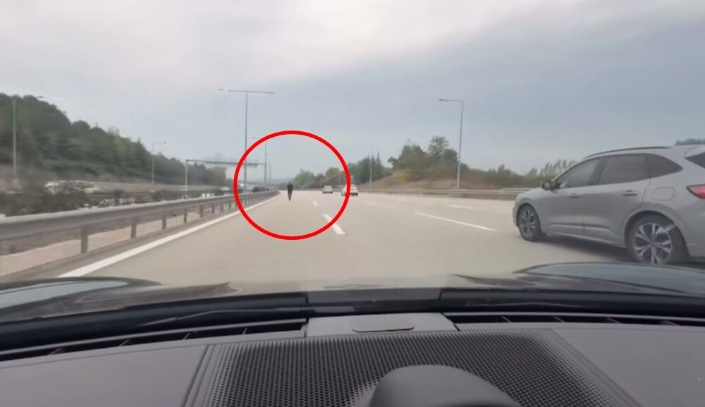Otoyolda yürüyen yaya, sürücünün dikkati sayesinde kurtuldu; o anlar kamerada