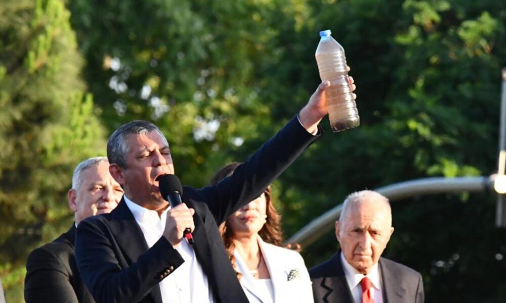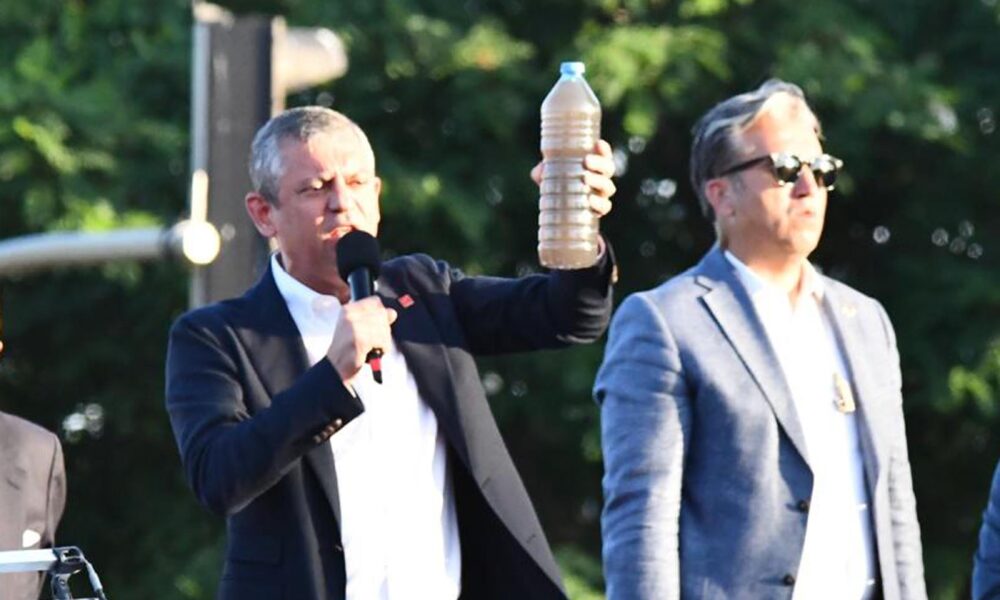 Trakya’da kirliğiyle gündemde olan Ergene Nehri’ne değinen ve nehirden alınan kirli suyu pet şişe içinde vatandaşlara gösteren Özel, “Erdoğan 2011de bu meydanlara geldi, Tekirdağa geldi, Ergeneye geldi. Dedi ki; Nasıl Haliçi temizlediysek. Ergeneyi de o şekilde temizleyeceğiz. Bakın o günden bugüne işte size Erdoğanın verdiği tertemiz Ergene sözü. İşte Erdoğanın Ergeneye gösterdiği saygı, verdiği sözün karşılığı budur. Ergeneyi 14 sene önce yüzeceğiz, su sporları yapacağız diye kandıranların Ergenedeki yüzleri budur, Ergeneyi kandıranların, Ergeneyi getirdiği nokta budur. Bunu milletvekillerinize emanet ediyorum. Hiç unutmuyorlar, hiç unutturmuyorlar. Ama Ergeneyi temizleyecek olan da Türkiye siyasetini temizleyecek olan da Cumhuriyet Halk Partisinden başkası değildir” ifadelerini kullandı.
