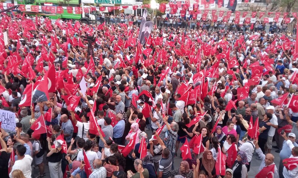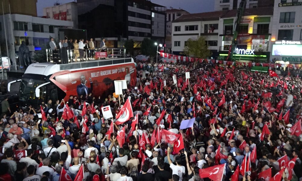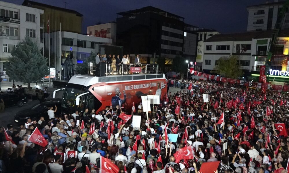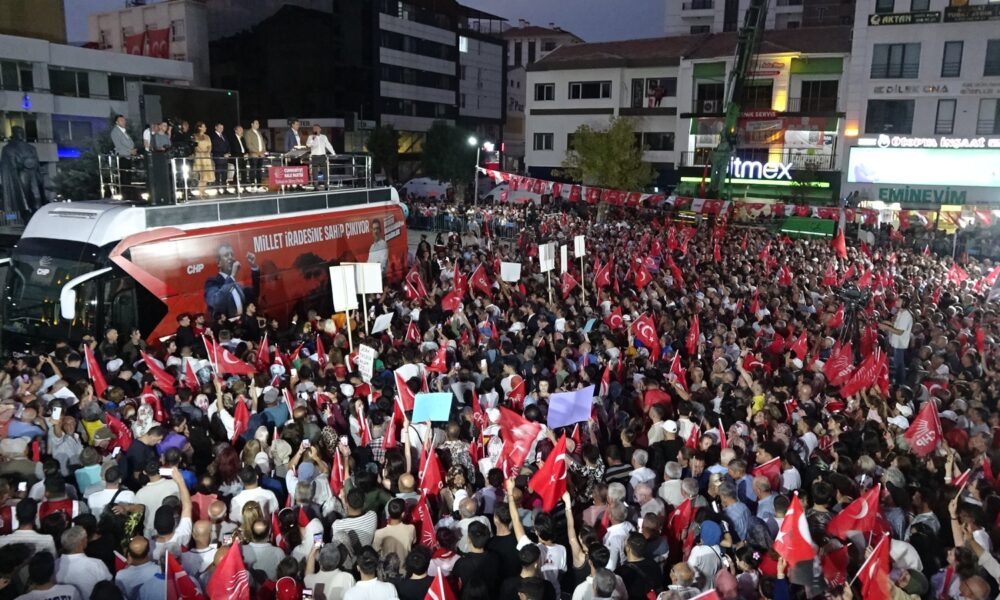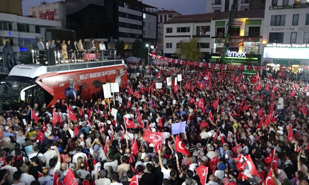 Türkiye’de yaşanan sorunların çaresinin CHP olduğunu söyleyen Özgür Özel, “Bugün Cumhuriyet Halk Partisi Türkiyenin birinci partisi. Tayyip Erdoğan, ne eskisi gibi bıçağının iki tarafı da kesiyor. Ne de eskisi gibi millet onun attıklarına inanıyor. Son anketler geldi. 28,5’tan 29 Erdoğan, seni yüzde 29’la orada oturtmam. Orda oturtmam. Aksarayın güzel insanları, yaşadığımız çözümler, yaşadığımız; sorunlar çaresiz değil. Her derdin elbette var bir çaresi onun da adı Cumhuriyet Halk Partisi. Ne yaparlarsa yapsınlar o sandık gelecek. Ne yaparlarsa yapsınlar Ekrem İmamoğlu oradan çıkacak. Bakın Aksaray ne diyor. Ey Erdoğan, ben halkım, ben milletim, ben milli iradeyim. Adayımı bırak. Sandığı getir. Adayımı yanımda, o sandığı önümde istiyorum. O sandık gelecek Erdoğan gidecek. Ekrem İmamoğlu gelip bütün dertleri, bütün tasaları bitirecek” dedi.
