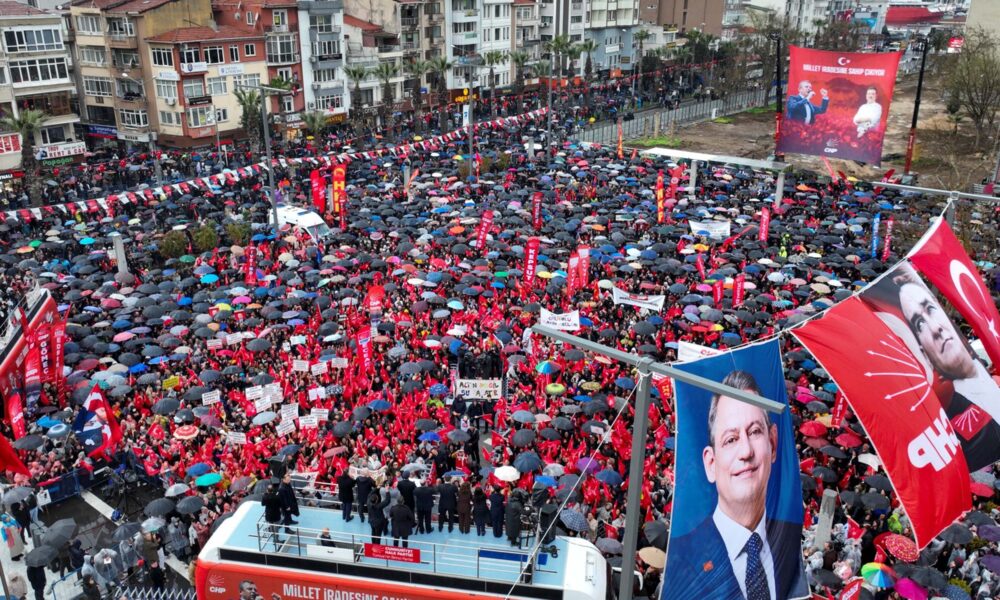 CHP Genel Başkanı Özgür Özel, 100’üncü mitingi için Çanakkale’ye geldi. Özel, Cumhuriyet Meydanı’nda düzenlenen mitingde alanı dolduranlara seslendi. Bugün tarihin akışının değiştiği, yenilmez geçilmez kentte olduklarını söyleyen CHP Genel Başkanı Özgür Özel, “Çanakkale mermi bitince süngüye doğru koşanların topraklarıdır. İşte bu mücadelenin verildiği topraklarda adalet için Cumhuriyetin emaneti sandık için seçme seçilme hakkı için seçtiğine sahip çıkmak için iradeye sahip çıkmak için 100’üncü kez eylemdeyiz, ayaktayız. Çanakkale bu milletin tarihine vurulmuş istiklal mührüdür. CHP iktidarında Çanakkale Köprüsü, Çanakkalelilere bedava olacak. Atatürkün emanetine sahip çıkanlar bu köprüye para ödemeyecekler” ifadelerini kullandı.