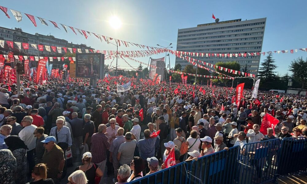 CHP, ‘Vesayete karşı, demokrasi için kayyıma ve darbeye karşı, halkın iradesi için’ sloganıyla Ankara-Tandoğan’da ‘Büyük Ankara Mitingi düzenledi. Mitinge CHP Genel Başkanı Özgür Özel’in yanı sıra Ankara Büyükşehir Belediye Başkanı Mansur Yavaş, İstanbul İl Başkanı Özgür Çelik ile beraber 81 il başkanı katıldı. Özgür Özel burada yaptığı konuşmada, cumhuriyetin kurulduğu ve yüceldiği topraklardan vatandaşlara seslendiğini belirterek, “Çankaya Köşküyle, Anıtkabir’iyle, Meclisleriyle ve meydanlarıyla adeta Cumhuriyetimizin yaşayan müzesine, Ata’mızın şehrine hoş geldiniz. Bugün bu tarihi meydanda yine tarih yazıyoruz. 1950’lerde Kıbrıs mitinglerinin, 1959’da büyük işçi mitinglerinin, 6’ncı Filo’ya karşı bağımsızlık mitinglerinin yapıldığı meydandayız. 70 yıldır haksızlığa direnenlerin meydanındayız. Bugün de vesayete ve darbeye ‘hayır’ demek için buradayız” diye konuştu.