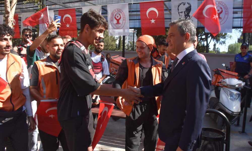 CHP Genel Başkanı Özgür Özel, İzmir programı kapsamında Bornova ilçesindeki Motokurye Parkı açılışına katıldı. Özel, burada yaptığı konuşmada internet üzerinden alışveriş ve uzaktan siparişin pandemi nedeniyle çok hızlı geliştiğini belirterek, Türkiyede pazarın beklenenin 30 kat üzerinde büyüdüğünü kaydetti. Bu durumun yeni bir istihdam alanı yarattığına dikkati çeken Özel, “Bu durum yeni bir güvencesizlik alanı da yaratıyor. Çalıştırana herhangi bir sorumluluk yüklemeyen, motorun kendinde olduğu, kıyafetini kendinin aldığı, masrafını kendinin yaptığı, yakıt giderini kendinin aldığı sosyal güvencesinin olmadığı bir güvencesizlik haliyle karşı karşıya geliyorlar. Biz bu konularda gerekli itirazlarımızı ve önerilerimizi her daim dile getirdik. Motokuryeleri, Türkiyede ilk gören ve ilk duyan siyasi parti Cumhuriyet Halk Partisiydi. Covid-19 sürecinde o dönemki genel başkan yardımcımız Veli Ağbaba meseleye dikkat çeken çok önemli bir toplantı ve birkaç eylem gerçekleştirmişlerdi. O günden bugüne de Cumhuriyet Halk Partili belediyeler bu konu üzerinde hassasiyet gösteriyorlar” ifadelerini kullandı.