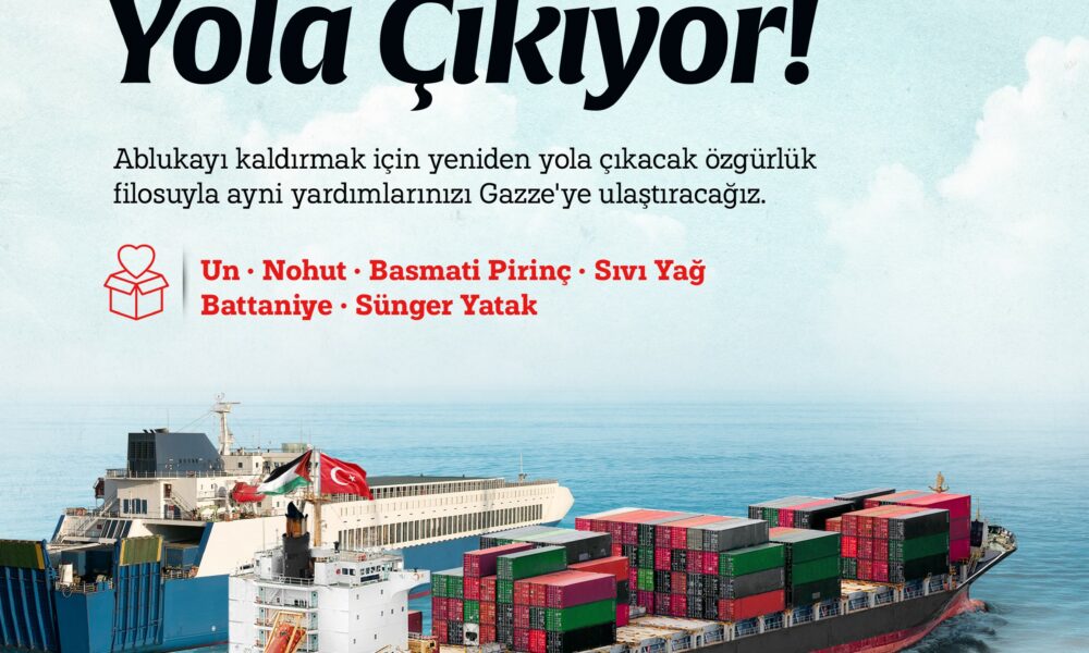 İHH İnsani Yardım Vakfı ve çok sayıda uluslararası sivil toplum kuruluşunun organize ettiği Özgürlük Filosu, Gazze için yola çıkmaya hazırlanıyor. Filoya katılım için başvuru süreci devam ediyor.12 farklı ülkeden sivil toplum kuruluşlarının girişimleriyle kurulan filo koalisyonu; 5 bin 500 ton insani yardım malzemesi ve çeşitli ülkelerden aktivistleri taşıyan gemilerle Akdenize açılacak.Gazze’ye insani yardım ulaştırmak ve işgalci İsrail’in şehirdeki ablukasının kalkmasını sağlamak amacıyla yola çıkacak olan Uluslararası Özgürlük Filosu’nda hazırlıklar sürüyor. Şu ana kadar filoda katılımcı olarak bulunmak isteyen binlerce kişi başvuruda bulundu. Katılım için başvuru süreci devam ediyor. Filoda yer almak isteyenler, ‘özgürlükfilosu’ internet adresi üzerinden başvuru formu doldurabiliyor.