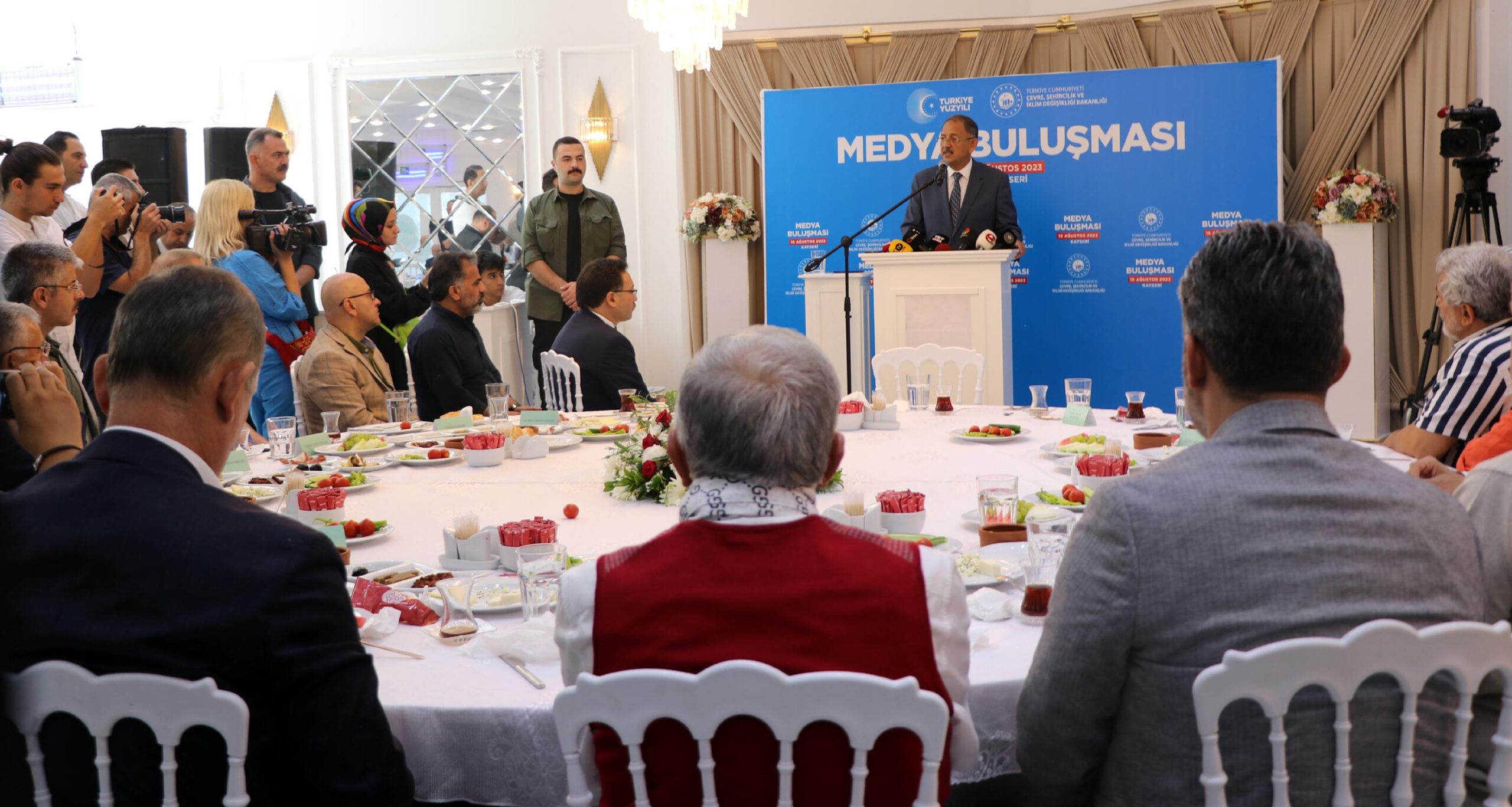 Çevre, Şehircilik ve İklim Değişikliği Bakanı Mehmet Özhaseki, Kayseri’deki programının 2’nci gününde, ‘Medya Buluşması’nda kentte görev yapan basın mensuplarıyla bir araya geldi. Programa, Kayseri Valisi Gökmen Çiçek, milletvekilleri, büyükşehir ve ilçe belediye başkanları, kentte görevli ulusal ve yerel basın kuruluşlarının temsilcileri katıldı.