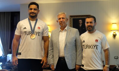Ankara Büyükşehir Belediye Başkanı Mansur Yavaş, Ankara Büyükşehir Belediyesindeki makamında Fransa’nın başkenti Paris’te düzenlenen Paris 2024 Olimpiyat Oyunları’ndan dönen milli güreşçi Taha Akgül ve Serbest Güreş...
