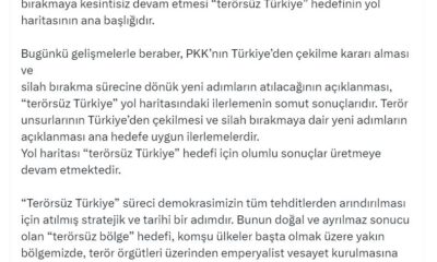 AK Parti Sözcüsü Çelik, sosyal medya hesabından yaptığı açıklamada, “PKKnın Türkiye’nin içindeki unsurları ile Irak ve Suriye başta olmak üzere tüm bölgedeki silahlı ve illegal yapılarının...