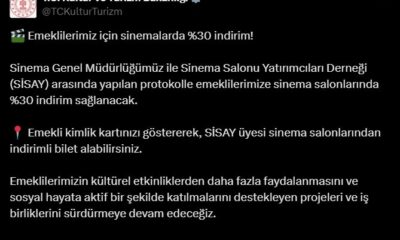 Kültür ve Turizm Bakanlığından yapılan açıklamaya göre, Sinema Genel Müdürlüğü ile SİSAY arasında Emekliler Yılı kapsamında protokol imzalandı. Protokol ile emekliler, emekli kimlik kartlarını ibraz etmeleri...