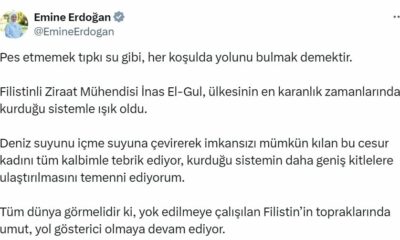 Cumhurbaşkanı Erdoğanın eşi Emine Erdoğan, sosyal medya hesabından yaptığı paylaşımda, “Pes etmemek tıpkı su gibi, her koşulda yolunu bulmak demektir. Filistinli Ziraat Mühendisi İnas El-Gul, ülkesinin...