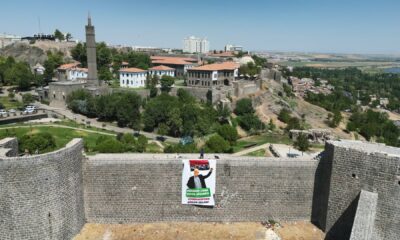 Kentte bir grup, yeni seçilen Hamas Siyasi Büro Şefi Yahya Sinvar’ın posterini, Sur ilçesinde bulunan tarihi surlara astı. Posterin üzerinde, ‘Mücahit lider Yahya Sinvar’a Diyarbakır’dan binler...