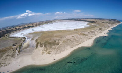 Enez ilçesi Karaincirli köyü sahili yakınlarındaki göldeki su, aşırı sıcak nedeniyle buharlaşınca ortaya tuzla kaplı bir alan çıktı. Bölgeye gelen tatilciler, kuruyup beyaza bürünen göle gelip,...