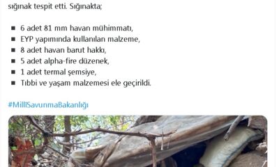 Bakanlığının sosyal medya hesabından yapılan açıklamada, “Mehmetçik, teröristlerin inlerine girmeye devam ediyor. Kahraman Türk Silahlı Kuvvetlerimiz, Irakın kuzeyindeki Pençe-Kilit Operasyonu bölgesinde yaptığı arama-tarama faaliyetinde, teröristlere ait...