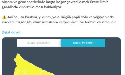 İstanbul Valiliği, Meteoroloji Genel Müdürlüğünden alınan raporun ardından kentin Avrupa Yakası için sarı kodlu sağanak yağış uyarısı yayınladı. Valiliğin sosyal medya hesabından yayınlanan uyarıda “Meteoroloji Genel...