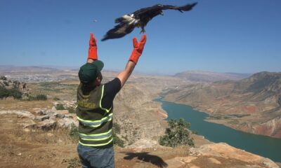 SİİRTte bitkin halde bulunup Siirt Üniversitesi Veteriner Fakültesi bünyesinde kurulan Hayvan Sağlığı Uygulama ve Araştırma Hastanesinde tedaviye alınan kaya kartalı, 1 hafta süren tedavisinin ardından doğal...