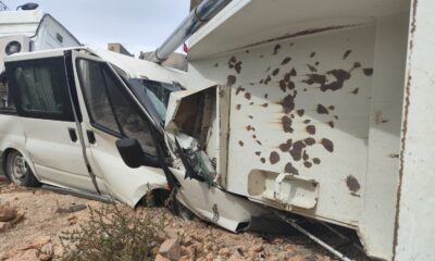 Kaza, sabah saatlerinde ilçe merkezinde meydana geldi. Sürücüsünün yüklü kumu boşaltmak için damperini kaldırdığı 23 DE 135 plakalı kamyon, 06 AE 2698 plakalı park halindeki minibüsün...
