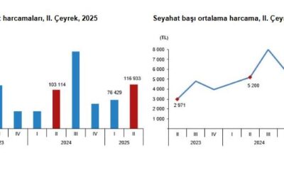 TÜİK, 2025 yılı 2nci çeyreğine ilişkin hanehalkı yurt içi turizm istatistiklerini açıkladı. Buna göre; yurt içinde ikamet eden 13 milyon 938 bin kişi seyahate çıktı. Seyahate...