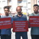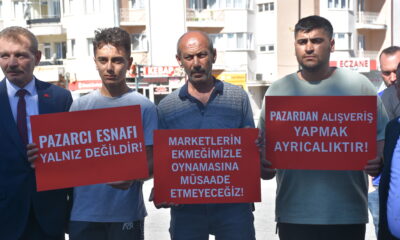 Kentte bir grup pazar esnafı, semt pazarının kurulduğu günler, pazar ürünlerine indirim yapan zincir marketleri protesto etmek için Alibaba Mahallesinde yerel zincir market şubesi önünde toplandı....