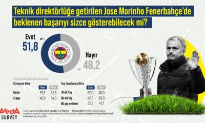 Araştırma şirketi Areda Survey Fenerbahçe’nin başına getirilen Jose Mourinho’nun takıma etkilerinin ne olacağı hakkında 2 bin 432 kişinin katıılım gösterdiği bir araştırma gerçekleştirdi. Araştırma sonuçlarına göre;...