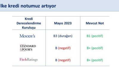 Kredi derecelendirme kurumu Moodys, Türkiye ekonomisine ilişkin değerlendirmesini açıkladı. Kuruluştan yapılan açıklamada, Türkiyenin kredi notunun B3’ten B1e yükseltildiği ve kredi notu görünümünün pozitif olarak korunduğu belirtildi....