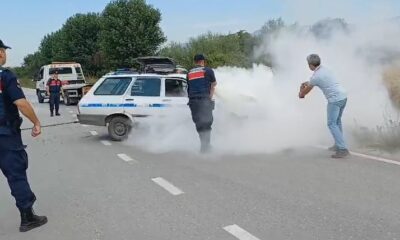 BOLUda, 1 kişinin yaralandığı kazada hasar alan otomobil, yoldan kaldırılacağı sırada yanmaya başladı. Yangını, jandarma personeli, yangın söndürme tüpüyle söndürdü. Olay, saat 08.30 sıralarında, Bahçeköy mevkisinde...