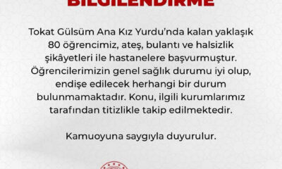 Tokat Gülsüm Ana KYK Kız Yurdu’nda kalan 80 öğrenci akşam yemeği sonrası ateş, bulantı ve halsizlik şikayetleriyle Tokat Devlet ve Gaziosmanpaşa Üniversitesi hastanelerine başvurdu. Tedavileri yapılan...