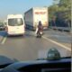 Sultanbeyli TEM otoyolu Ankara istikametinde ilerleyen bir motosiklet sürücüsü, bir eliyle motosikletin direksiyonunu tutarken, diğer eliyle ise cansız mankeni taşıdı. Motosiklet sürücüsünün trafiği tehlikeye düşürdüğü anlar,...