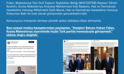 DMM, sosyal medya ve bazı yayın sitelerinde yer alan Dışişleri Bakanı Hakan Fidan, Kuzey Makedonya ziyaretinde hiçbir Türk partisi mensubuyla görüşmedi iddialarının doğru olmadığını bildirdi. Yapılan paylaşımda,...