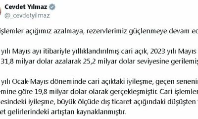 Cumhurbaşkanı Yardımcısı Yılmaz, sosyal medya hesabından yaptığı açıklamada, “Cari işlemler açığımız azalmaya, rezervlerimiz güçlenmeye devam ediyor. 2024 yılı Mayıs ayı itibariyle yıllıklandırılmış cari açık, 2023 yılı...