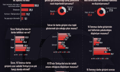 Araştırmaya göre, Türk halkının yüzde 58,6’sı darbe haberini ilk duyduğunda inanmadığını, doğruluğunu teyit etmek istediğini belirtiyor. Yüzde 25,1’i öfkelendiğini, yüzde 11,2’si korktuğunu / tedirgin olduğunu ve...