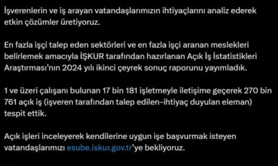 Bakan Işıkhan, sosyal medya hesabından yaptığı açıklamada, “İşverenlerin ve iş arayan vatandaşlarımızın ihtiyaçlarını analiz ederek etkin çözümler üretiyoruz. En fazla işçi talep eden sektörleri ve en...