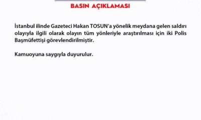 EGM: İstanbulda gazeteci Hakan Tosuna yönelik meydana gelen saldırı olayıyla ilgili olarak olayın tüm yönleriyle araştırılması için 2 Polis Başmüfettişi görevlendirilmiştir.