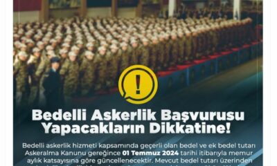 Bakanlığın sosyal medya hesabından yapılan açıklamada, “Bedelli askerlik hizmeti kapsamında geçerli olan bedel ve ek bedel tutarı Askeralma Kanunu gereğince 1 Temmuz 2024 tarihi itibarıyla memur...