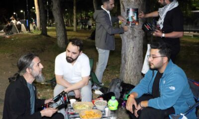 Doç. Dr. Muhammet Tatar, aralarında öğretim görevlisi ve onlarca gönüllü öğrenci ile bir gecede kampüsteki tüm ağaç, direk, duvar ve uygun görülen her yere, üzerinde İsrail...