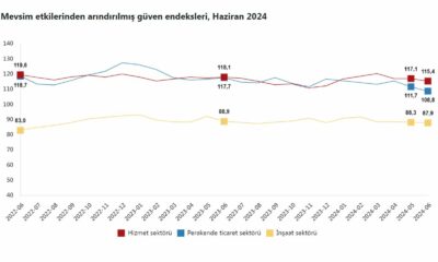 TÜİK, Haziran 2024 dönemine ilişkin hizmet, perakende ticaret ve inşaat sektörleri güven endekslerini açıkladı. Buna göre, mevsim etkilerinden arındırılmış güven endeksi haziran ayında bir önceki aya...
