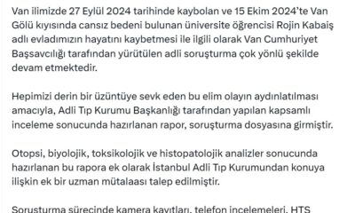 Adalet Bakanı Yılmaz Tunç, 27 Eylül 2024 tarihinde kaybolduktan sonra, 15 Ekim 2024te Van Gölü kıyısında cansız bedeni bulunan Rojin Kabaişin ölümüne ilişkin soruşturmayla ilgili, sosyal...