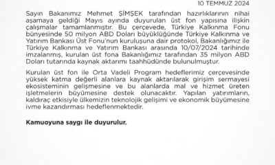 Hazine ve Maliye Bakanlığının sosyal medya hesabı üzerinden yapılan yazılı açıklamada, “Bakanımız Mehmet Şimşek tarafından hazırlıklarının nihai aşamaya geldiği Mayıs ayında duyurulan üst fon yapısına ilişkin...