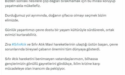 Emine Erdoğan, 5 Haziran Dünya Çevre Günü nedeniyle sosyal medya hesabından bir mesaj paylaştı. Erdoğan, medeniyet tarihinin kendilerine emsalsiz ve sürdürülebilir bir çevre mirası sunduğunu belirterek,...