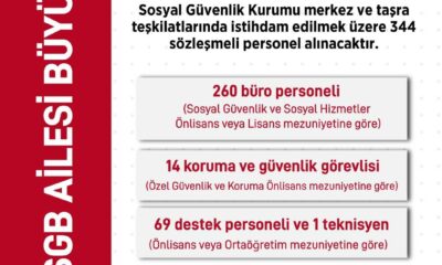 Bakan Işıkhan, sosyal medya hesabından yaptığı paylaşımda, SGKnın merkez ve taşra teşkilatlarında istihdam edilmek üzere; sözleşmeli 260 büro personeli, 14 koruma ve güvenlik görevlisi, 69 destek personeli...
