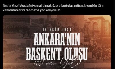 Cumhurbaşkanı Recep Tayyip Erdoğan, sosyal medya hesabından yaptığı paylaşımda, “Milli Mücadelemizin karargahı olan, Büyük Zafer’e giden yolda tarihi bir rol oynayan Ankara’mızın başkent ilan edilişinin 102’nci...