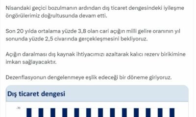 Bakan Şimşek, sosyal medya hesabından yaptığı açıklamada, mayıs ayı dış ticaret rakamlarına ilişkin değerlendirmede bulundu. Şimşek, “Dış dengedeki iyileşme devam ediyor. İhracatın yüzde 11,4 arttığı, ithalatın...