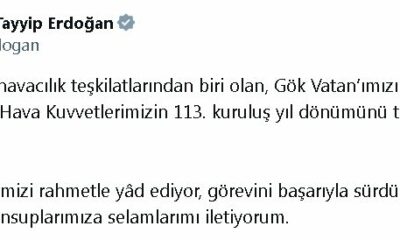 Cumhurbaşkanı Erdoğan, sosyal medya hesabından yaptığı açıklamada, “Dünyanın ilk havacılık teşkilatlarından biri olan, Gök Vatanımızı kahramanca koruyan Türk Hava Kuvvetlerimizin 113üncü kuruluş yıl dönümünü tebrik ediyorum....