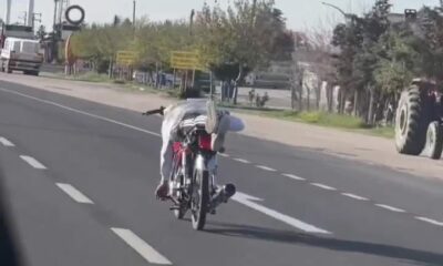 AKSARAY’da bir sürücünün motosikletinin üzerine yatarak yaptığı tehlikeli yolculuk cep telefonu kamerasıyla kaydedildi. Olay, saat 09.00 sıralarında Aksaray- Ankara kara yolunun 15inci kilometresinde meydana geldi. Kara...