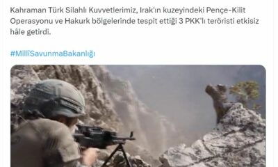 MSB: Irakın kuzeyindeki Pençe-Kilit Operasyonu ve Hakurk bölgelerinde tespit edilen 3 PKKlı terörist etkisiz hâle getirildi.