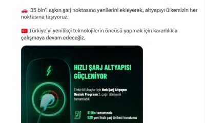 Sanayi ve Teknoloji Bakanı Mehmet Fatih Kacır, sosyal medya hesabından yaptığı açıklamada, “Elektrikli Araçlar için Hızlı Şarj Altyapısı Destek Programımızın ikinci çağrısını tamamladık. 81 ilin tamamında...