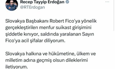 Cumhurbaşkanı Recep Tayyip Erdoğan, sosyal medya hesabı üzerinden yaptığı yazılı açıklamada, “Slovakya Başbakanı Robert Ficoya yönelik gerçekleştirilen menfur suikast girişimini şiddetle kınıyor, saldırıda yaralanan Sayın Ficoya...
