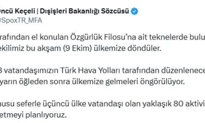 Dışişleri Bakanlığı Sözcüsü Keçeli, Özgürlük Filosuna gerçekleştirilen müdahale sonrası alıkonulan Türk vatandaşlarının tahliyesine ilişkin, sosyal medya hesabından açıklama yaptı. Keçeli, “İsrail tarafından el konulan Özgürlük Filosu’na...
