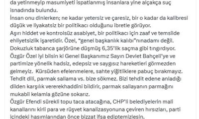 MHPli Semih Yalçın, CHP Genel Başkanı Özgür Özelin partisine yönelik açıklamalarına sosyal medya hesabından yanıt verdi. Yalçın, “Hadsiz Özgür Özele cevap. CHPnin başı Özgür Özel kürsüde...