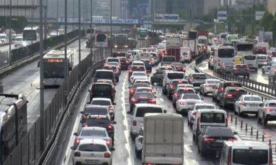 Yağışlı havanında etkisiyle, haftanın son iş gününde İstanbulda trafik yoğunluğu yaşanıyor. Saatler 18.00i gösterdiğinde İBB Trafik Yoğunluk Haritasında, Anadolu ve Avrupa Yakasında trafik yoğunluğu yüzde 81e...