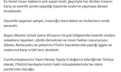 Adalet Bakanı Yılmaz Tunç, İsrailin Gazzede sivillere yönelik başlattığı saldırıların 2nci yıl dönümü nedeniyle sosyal medya hesabından açıklama yaptı. Bakan Tunç, “Gazzede 7 Ekim 2023 tarihinden...