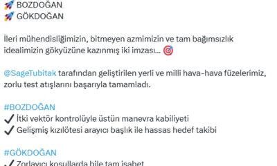 Bakan Kacır, sosyal medya hesabından yaptığı açıklamada, “Gök Vatanın sarsılmaz iki pençesi Bozdoğan, Gökdoğan. İleri mühendisliğimizin, bitmeyen azmimizin ve tam bağımsızlık idealimizin gökyüzüne kazınmış iki imzası....
